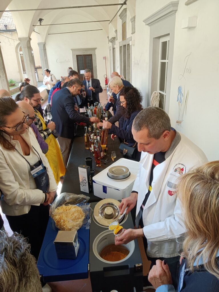 Nel pomeriggio, l’evento è entrato nel vivo con un denso programma di degustazioni e abbinamenti che ha coinvolto il pubblico in esperienze sensoriali capaci di valorizzare la complessità aromatica dei distillati abbinati a sapori dolci e salati. A dialogare con grappa e altri distillati in percorsi sensoriali di grande interesse sono stati i formaggi, in collaborazione con gli assaggiatori ONAF, i salumi insieme agli assaggiatori ONAS e ATAS e le torte al cioccolato di TortaPistocchi con la presenza del produttore. L’evento ha dato spazio anche a gin e whisky toscani, abbinamenti fra grappa e sigaro, con CTS – Compagnia Toscana Sigari, e gelato artigianale, con la Gelateria Ballerini di Signa. Ad arricchire ulteriormente la giornata è stato il banco di assaggio gestito da ANAG con i prodotti vincitori del concorso nazionale Premio Alambicco d’Oro ANAG 2025 e altre eccellenze provenienti da tutta Italia.